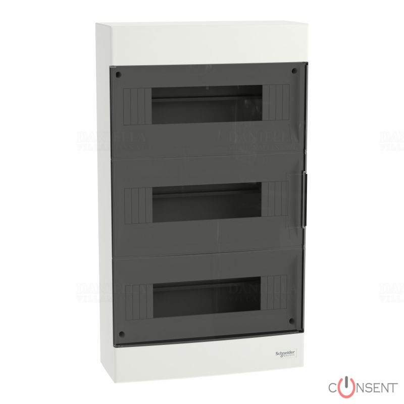 EASY9 EU Kiselosztó, füstszínű ajtó, falon kívüli, 3x12 modul, PEN